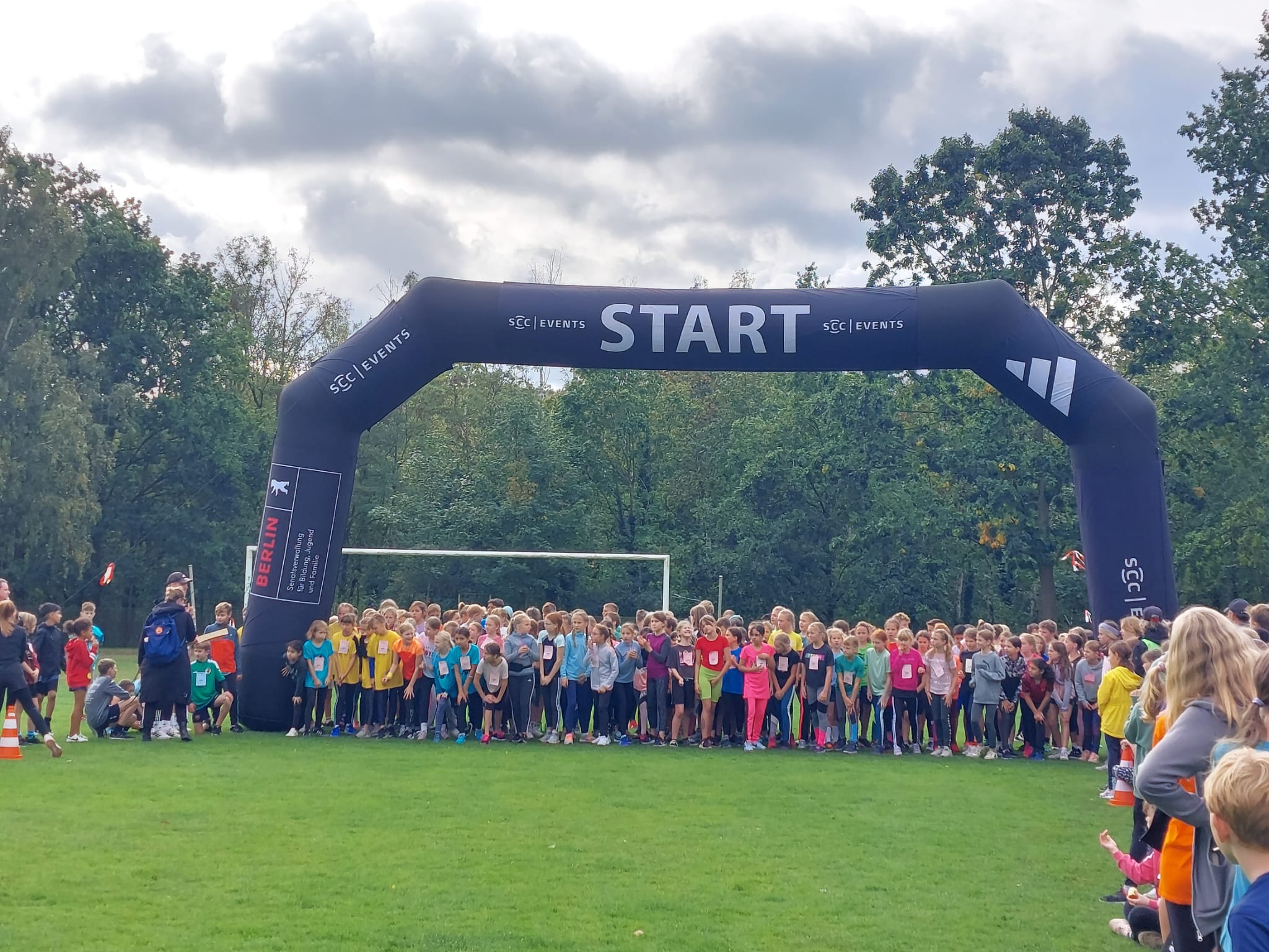 Am 4. Oktober 2023, bei schönem Herbstwetter, starteten 64 Mädchen und Jungs aus den Klassenstufen 3, 4, 5 und 6 der Grundschule am Mohnweg zu einem Laufabenteuer. Mit 5 BetreuerInnen machten sie sich mit Bus und Straßenbahn auf den Weg zum Hirschgarten in Friedrichshagen. Dort wartete eine abwechslungsreiche Laufstrecke mit 1,2 km für die Jüngsten und 1,6 km für die älteren Kinder.