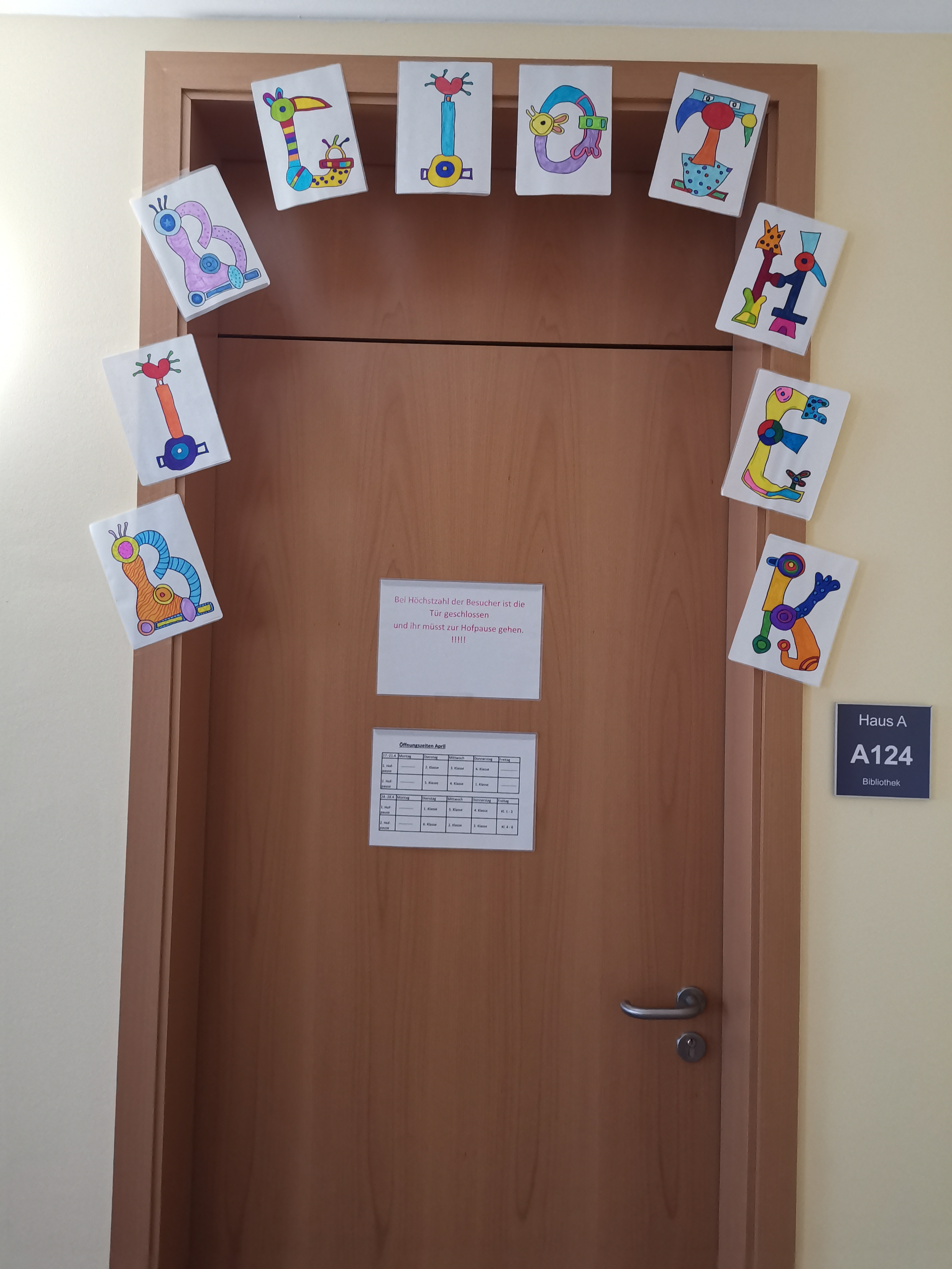 Die Bibliothek ist in den Hofpausen geöffnet. Um jedem Schüler die Möglichkeit zu geben wurde ein Klassenplan erstellt.
