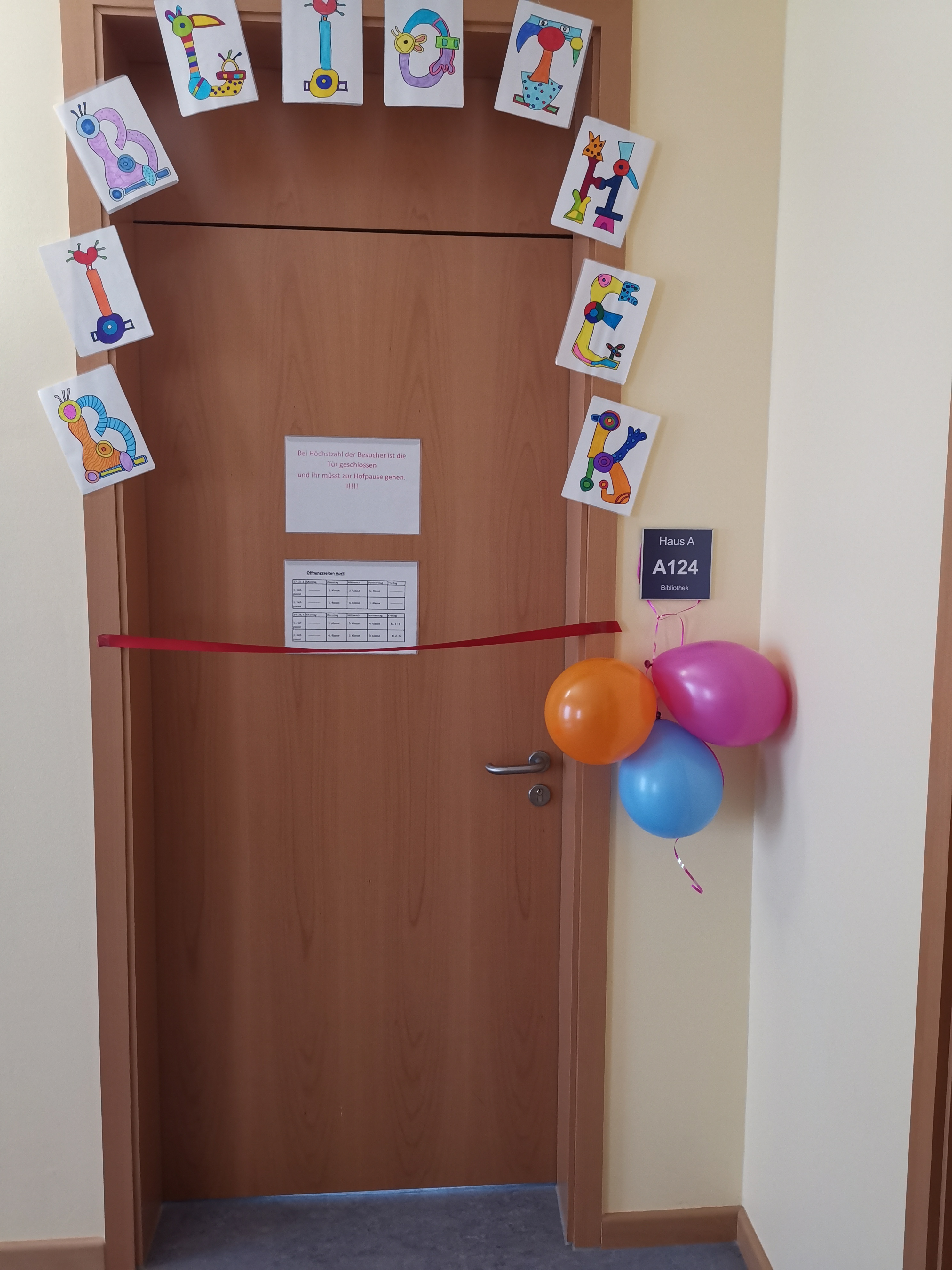 So konnte die Bibliothek am 18.04.2023 um 9.00 Uhr durch Frau Kleinert (Bibliotheksverantwortliche) feierlich eröffnet werden.