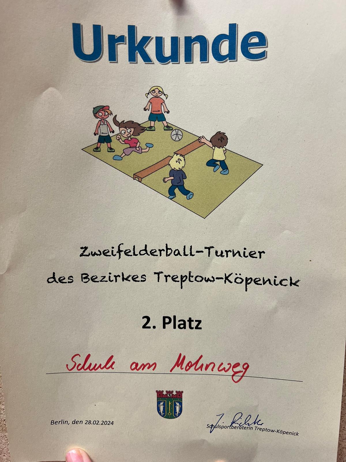 Das diesjährige Zweifelderballturnier Treptow-Köpenick wurde erfolgreich an unserer Grundschule ausgetragen. Beteiligt waren 10 Grundschulen des Bezirks und auch Eltern und Freunde waren dabei, um ihre Mannschaften anzufeuern.